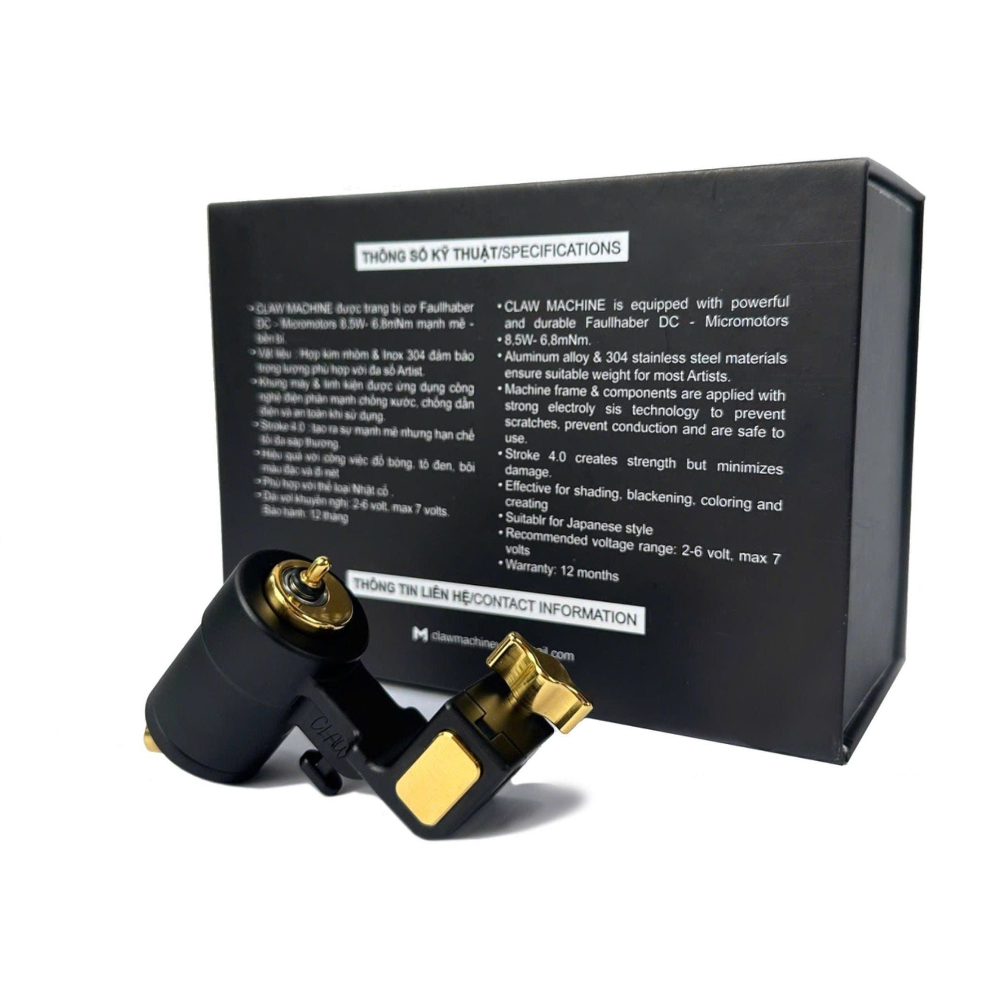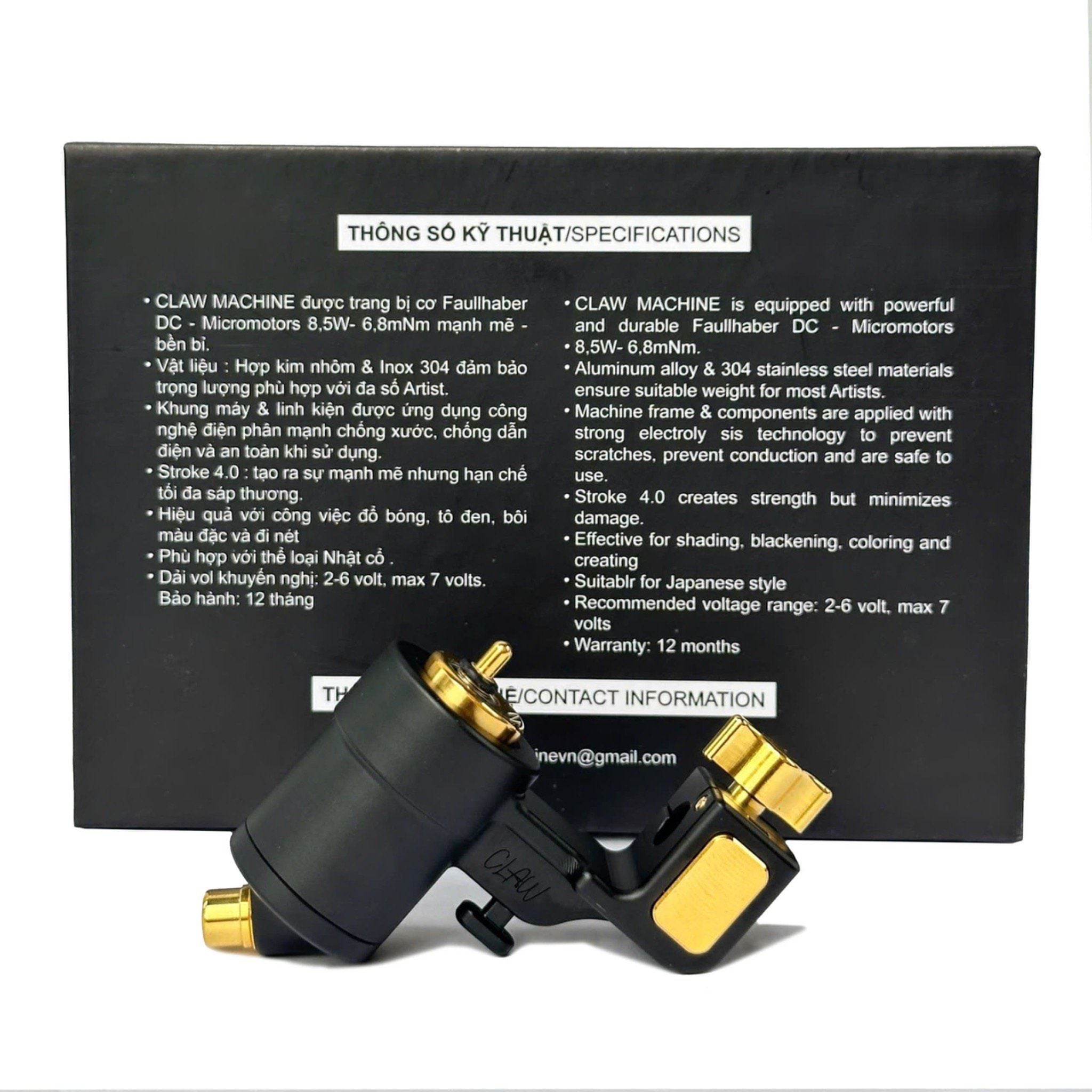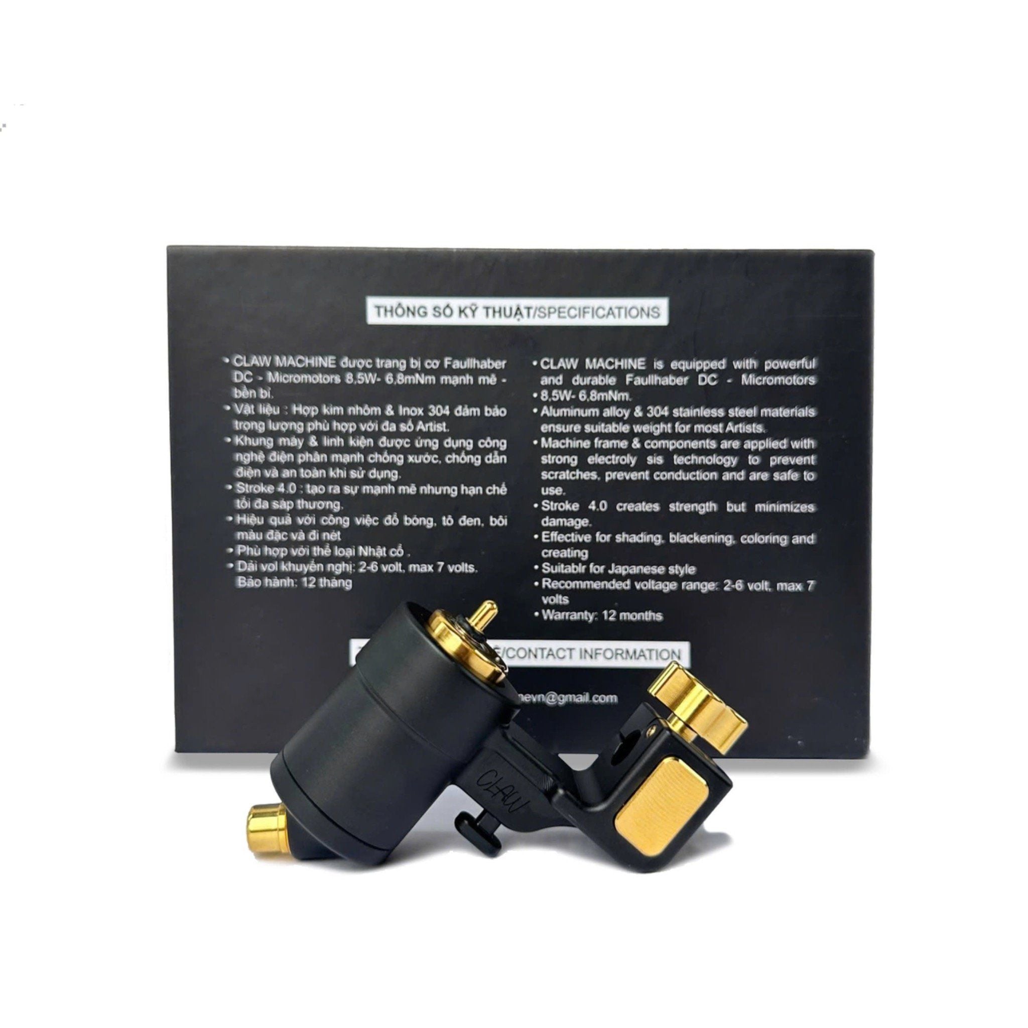 - Box máy bao gồm : 1 Grip inox 22mm , 1 máy Claw + núm cao su giữ kim + chun .